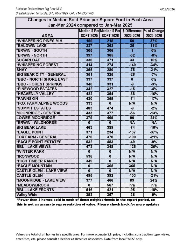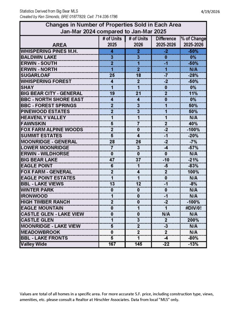 Big Bear Market Stats as of March 31st, 2026